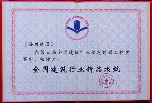 8月26日,中國建筑業(yè)協(xié)會在大連召開的全國建筑行業(yè)信息傳媒工作經(jīng)驗(yàn)交流會上,向第五屆全國建筑行業(yè)信息傳媒工作競賽的優(yōu)勝者頒發(fā)了獎杯和榮譽(yù)證書。海川集團(tuán)被評為“全國建筑行業(yè)信息宣傳先進(jìn)集體”,公司網(wǎng)站被評為“全國建筑行業(yè)精品網(wǎng)站”,《海川建設(shè)》企業(yè)報被評為“全國建筑行業(yè)精品報紙”,王修岐同志被評為“全國建筑行業(yè)信息宣傳優(yōu)秀工作者”。