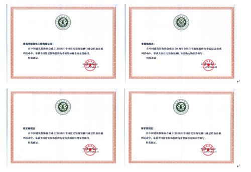 2015年8月7日,中國建筑裝飾協(xié)會以中裝協(xié)[2015]60號文件下發(fā)了關(guān)于《慶祝中國建筑裝飾協(xié)會成立30周年全國住宅裝飾裝修行業(yè)總結(jié)表彰系列活動的表彰決定》,華聯(lián)公司榮獲四項國家級榮譽稱號——青島華聯(lián)裝飾工程有限公司獲“全國住宅裝飾裝修行業(yè)明星標桿企業(yè)”榮譽稱號,公司總經(jīng)理李尊強獲“全國住宅裝飾裝修行業(yè)功勛人物”,項目經(jīng)理邢文峰獲“全國住宅裝飾裝修行業(yè)優(yōu)秀項目經(jīng)理”,設(shè)計院院長李學(xué)芳獲“全國住宅裝飾裝修行業(yè)資深設(shè)計師”。